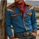 Men's Paisley Floral Print Ethnic Shirt Western Shirt Cowboy Shirt Long Sleeve Vintage Retro Outdoor Daily WorkWear Fall & Winter Turndown 3D Print Front Two Pockets Button Up Shirts Blue Brown Khaki