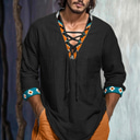 Men's Shirt Linen Shirt Viking Style Pirate Shirt Summer Shirt Beach Wear White Orange Green Light Blue Long Sleeve Solid Color Collarless Street Daily Clothing Apparel |