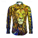Men's Lion Shirt Button Up Shirt Long Sleeve Abstract Daily Wear Going out Spring & Summer Turndown Print Button-Down Yellow Red Blue Purple Green |