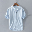 Men's Shirt Linen Shirt Cotton Linen Shirt White Cotton Shirt Chinese Collar Shirt Mandarin Collar Shirt Plain Vacation Street White Royal Blue Gray Light Blue Short Sleeve Stand Collar Summer |