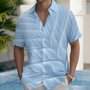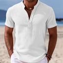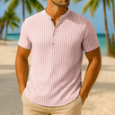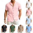 Men's Shirt Linen Shirt Popover Shirt Casual Shirt Cotton Shirt Stripe Vacation Street White Pink Navy Blue Dark Green Short Sleeve Band Collar Summer Clothing Apparel |