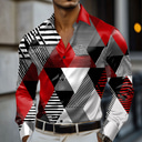 Men's Geometric Color Block Shirt Satin Shirt Dress Shirt Long Sleeve Fashion Casual Vacation Dailywear Summer Spring Fall Turndown 3D Print Button Up Shirts Red Blue Purple Green |