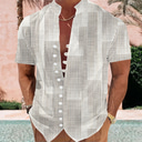 Men's Plaid Geometric Pattern Button Up Shirt Printed Shirts Short Sleeve Hawaiian Resort Vacation Holiday Daily Wear Summer Standing Collar Print Button-Down Light Blue White off-white Khaki