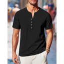 Men's Shirt Linen Shirt Summer Shirt Beach Shirt Solid Color Casual Daily Black White Short Sleeve Round Neck Summer Spring Clothing Apparel