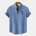 Men's Shirt Linen Shirt Beach Shirt Summer Hawaiian Shirt Coconut Tree Vacation Holiday Pink Blue khaki Short Sleeves Turndown Summer Clothing Apparel