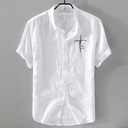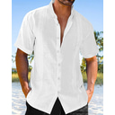 Men's Shirt Linen Shirt Casual Shirt Button Up Shirt Cotton Shirt Plain Vacation Street Black White Green Apricot Short Sleeve Band Collar Summer Spring Clothing Apparel Button-Down