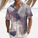 Men's Geometric Color Block Gradient Color Shirt Summer Shirt Button Up Shirt Short Sleeve Fashion Casual Vacation Holiday Streetwear Summer Turndown 3D Print Front One Pocket Linen Like Shirt Purple