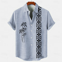 Men's Linen Shirt Beach Shirt Summer Hawaiian Shirt Coconut Tree Outdoor Vacation Blue Brown Green Short Sleeve Stand Collar Summer Spring Clothing Apparel Print |