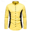 Men's Shirt Chinese Collar Shirt Mandarin Collar Shirt Summer Shirt Casual Shirt Beach Shirt White Yellow Long Sleeve Color Block Grandad Collar Band Collar Vacation Hawaiian Patchwork Clothing |
