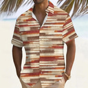 Men's Geometric Color Block Patchwork Shirt Summer Shirt Button Up Shirt Short Sleeve Fashion Casual Outdoor Vacation Dailywear Summer Spring Turndown 3D Print Collared Shirts Khaki |