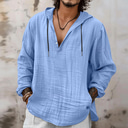 Men's Shirt Linen Shirt Viking Style Summer Shirt Beach Wear Hooded Shirt Solid Color Vacation Street Navy Blue Sky Blue Orange Khaki Long Sleeve Hooded Summer Spring Clothing Apparel Drawstring |