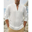 Men's Shirt Linen Shirt Cotton Linen Shirt White Cotton Shirt Chinese Collar Shirt Mandarin Collar Shirt Plain Vacation Casual White Long Sleeve V Neck Spring & Fall Clothing Apparel |