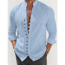 Men's Shirt Linen Shirt Summer Shirt Beach Wear Casual Shirt Button Up Shirt Plain Vacation Daily Black White Pink Blue Long Sleeve Band Collar Summer Spring & Fall Clothing Apparel |