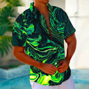 Men's Abstract Marble Shirt Button Up Shirt Short Sleeve Fashion Casual Vacation Streetwear Beach Wear Summer Fall Turndown 3D Print Collared Shirts Front One Pocket Green |