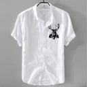 Men's Linen Shirt Casual Shirt Cotton Linen Shirt Button Up Shirt Animal Patterned Vacation Daily Wear White Dark Navy Sky Blue Khaki Short Sleeve Lapel All Seasons Clothing Apparel Buckle |