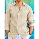 Men's Shirt Linen Shirt Cotton Linen Shirt Summer Shirt Beach Shirt Button Up Shirt Plain Casual Daily Black White Blue Khaki Long Sleeve Turndown Spring & Summer Clothing Apparel Multi Pocket |