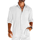 Men's Shirt Guayabera Shirt Linen Shirt Button Up Shirt Summer Shirt Beach Shirt Black White Navy Blue Long Sleeve Plain Turndown Spring & Summer Casual Daily Clothing Apparel Patchwork |