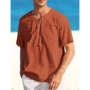 Men's Shirt Linen Shirt Cotton Linen Shirt Summer Shirt Beach Shirt Plain Vacation Casual Black White Pink Blue Short Sleeve V Neck Summer Clothing Apparel Drawstring |