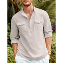 Men's Shirt Linen Shirt Casual Shirt Beach Shirt Black White Blue Long Sleeve Plain Stand Collar Spring & Summer Hawaiian Holiday Clothing Apparel Basic |
