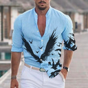 Men's Eagle Shirt Button Up Shirt Long Sleeve Fashion Streetwear Designer Outdoor Casual Daily Summer Spring Fall Stand Collar Print White Blue Dusty Blue Green