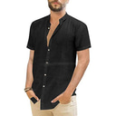 Men's Shirt Linen Shirt Guayabera Shirt Band Collar Shirt Summer Shirt Beach Wear Plain Vacation Curise Black White Blue Green Short Sleeve Collar Summer Clothing Apparel