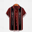 Men's Pinstripe Bowling Shirt Button Up Shirt Short Sleeve Casual Causal Casual Summer Spring Turndown Button Up Red |