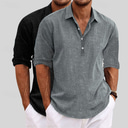 Men's Shirt Linen Shirt Summer Shirt Beach Wear Plain Vacation Casual Khaki+Black Blue+Khaki Gray+Khaki White+Black Long Sleeve Lapel Summer Spring Clothing Apparel Multi-pack |