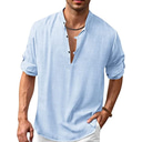 Men's Band Collar Shirt Popover Shirt Summer Shirt Beach Wear Casual Shirt Plain Outdoor Holiday White Blue Green Gray Short Sleeve Henley Spring & Summer Clothing Apparel |