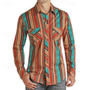 Men's Graphic Prints Vintage Geometry Shirt Western Shirt Cowboy Shirt Long Sleeve Fashion Streetwear Designer Daily Outdoor Fall & Winter Turndown Print Button-Down Blue Red Orange Green