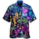 Men's Flamingo Lights Shirt Summer Hawaiian Shirt Aloha Shirt Short Sleeve Shirt Turndown Tropical Fashion Streetwear Casual Hawaiian Holiday Black Yellow Light Green S M L