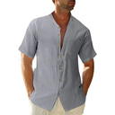 Men's Linen Shirt Band Collar Shirt Summer Shirt Beach Wear Plain Casual Daily White Royal Blue Blue Gray Short Sleeve Stand Collar Summer Clothing Apparel