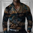 Men's Floral Button Up Shirt Designer Shirt Long Sleeve Fashion Casual Vacation Party / Evening Spring Fall Turndown Button Up Dark Green |