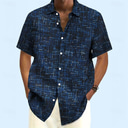 Men's Geometric Grid / Plaid Shirt Casual Shirt Button Up Shirt Short Sleeve Fashion Casual Vacation Dailywear Summer Spring Turndown 3D Print Collared Shirts Dark Blue |