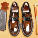 Men's Premium Cowhide Leather Loafers with Glossy Finish, Chain Detail - Formal Dress Shoes for Business, Weddings & Special Occasions |