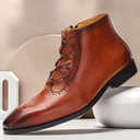 Men's Brown Lace-Up Ankle Boots with Brogue Detailing - Premium Cowhide Leather Dress Boots for Formal & Business Wear |