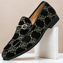 Men's Blue Embroidered Velvet Loafers with Metal Bit – Elegant Prom and Graduation Party Dress Shoes |