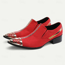 Men's Red Leather Suede Slip-On Shoes with Metal Toe Cap and Fashion Strap - Elegant Western Style for Formal Events and Parties |