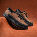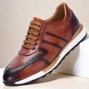 Men's Brown Premium Cowhide Sneakers with Perforated Detailing and Lace-Up Closure – Stylish Casual Shoes for Daily Wear |
