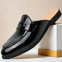 Men's Classic White Faux Leather Mule Loafers - Sleek Slip-On Shoes for Business Casual and Formal Events |