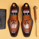 Men's Handmade Genuine Leather Loafers - Premium Brown Slip-On Tassel Dress Shoes for Kentucky Derby, Business & Formal Occasions |