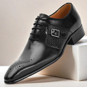 Men's Premium Cowhide Leather Dress Shoes with Snakeskin Texture, Lace-Up Design and Buckle Detail, Stylish Formal Shoes for Business, Weddings, and Special Occasions |