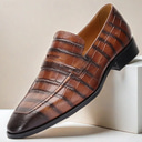 Men's Classic Brown Crocodile Pattern Leather Dress Shoes - Ideal for Business Meetings and Kentucky Derby |