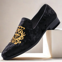 Men's Elegant and Sophisticated Burgundy Velvet Loafers with Embroidered Design - Perfect for Weddings or Special Events
