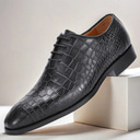 Men's Green Crocodile Pattern Leather Oxford Shoes – Premium Cowhide Lace-Up Design for Formal, Business and Special Occasions