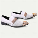 Men's White Premium Cowhide Slip-On Loafers with Metallic Rose Gold Chain and Decorative Toe, Stylish Casual Footwear for Formal and Semi-Formal Occasions