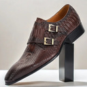 Men's Double Monk Strap Crocodile Embossed Dress Shoes – Statement Leather Kentucky Derby Shoes for Race Day and Garden Parties |