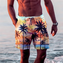 Men's Leaf Flamingo Graphic Prints Board Shorts Swim Shorts Swim Trunks Mid Waist Hawaiian Boho Casual Daily Holiday Drawstring with Mesh lining Elastic Waist Designer Clothing Apparel |