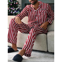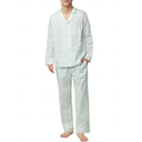 Men's Loungewear Sleepwear Pajama Set Pajama Top and Pant 2 Pieces Stripe Stylish Casual Comfort Home Daily Cotton Blend Comfort Lapel Long Sleeve Shirt Pant Drawstring Elastic Waist Summer Spring |