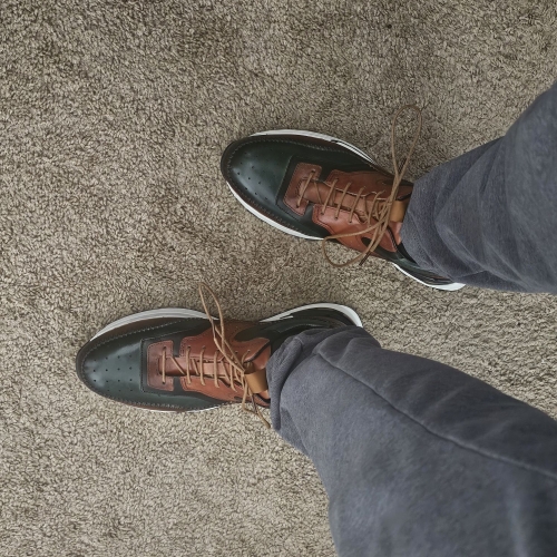 The sizing is dead on — these shoes fit exactly as expected. They look just like they did in the pictures, with that same sharp color contrast and sleek design. The craftsmanship feels premium, and they’re surprisingly comfortable right out of the box. Great balance between style and comfort — feels great on my feet!