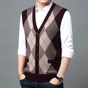Men's Sweater Vest Dress Sweater Wool Sweater Pullover Sweater Jumper Knit Knitted Plaid V Neck Stylish Vintage Style Clothing Apparel Fall Winter Navy Blue Light Grey S M L